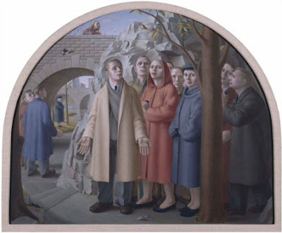 Art need not be openly religious in subject matter to summon up a sense of the sacred. While wandering through a retrospective show of tempera paintings by American Artist George Tooker at the Columbus (Ohio) Museum of Art in the summer of 2009, I was instantly drawn to a panel titled Bird Watchers. It depicted eight people, gathered under a tree with roosting birds in New York’s Central Park. It was a simple enough subject, yet there was something mysterious about the uniform features of these bird watchers, the iconographic gestures of their hands, and the look of wonder in their eyes--almost as if they had just witnessed the Ascension!